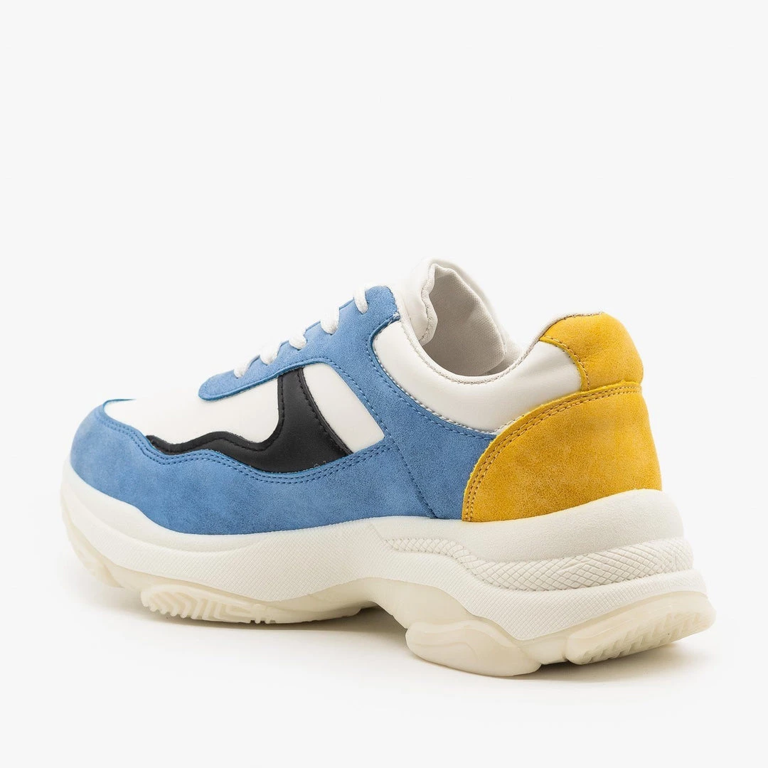 Add a pop of color to your outfits with these adorable Unilady Shoes Paula-5 sneakers! These sneakers are made out of faux suede and feature a trendy chunky style and an easy-to-wear lace-up design. Available in several lovely colors, these shoes feature a beautiful color block design, and will be your new favorite wardrobe item. Pair these shoes with a basic tshirt dress and some stylish sunglasses for a super cool and cute street fashion outfit! Made out of all man-made/vegan materials.