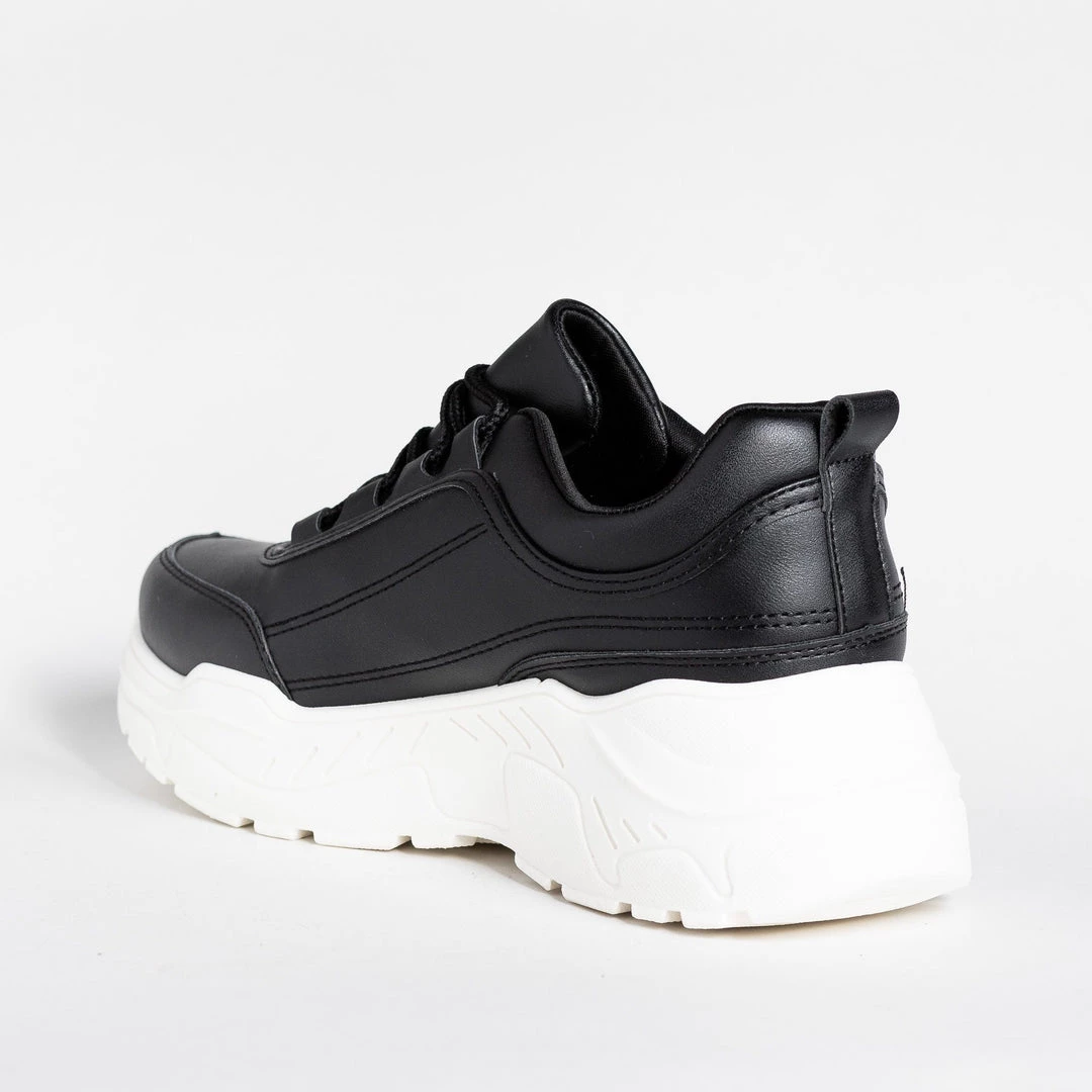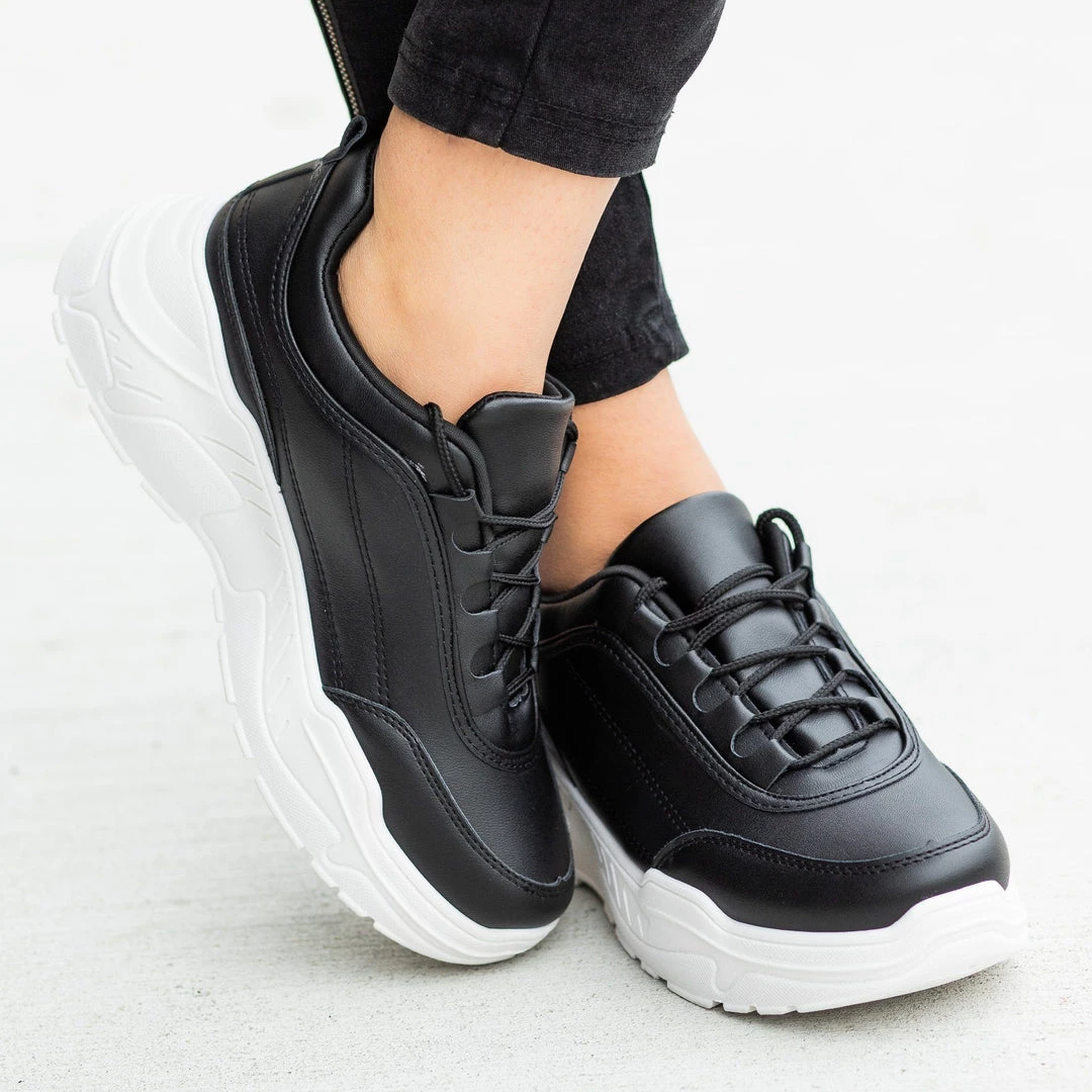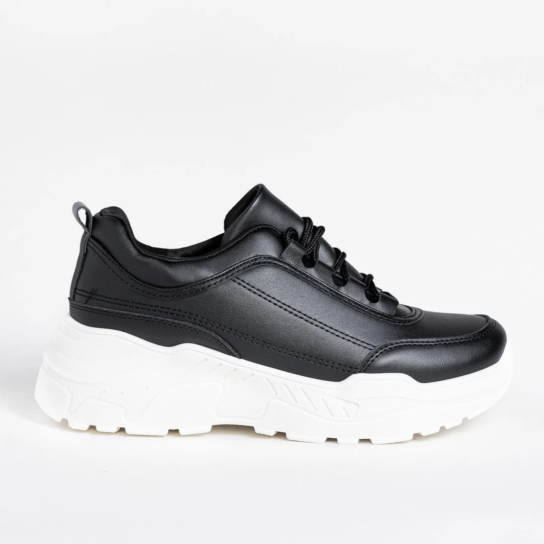 Make a fashion statement with these Unilady Shoes Dawn-3 platform sneakers! Crafted out of faux leather, these sneakers feature a lace-up design and a 3″ chunky platform sole. The ridged sole offers extra grip and support, all while keeping your outfits right on trend. Pair these shoes with a denim jumper and a long-sleeved crop top for a super fashionable and edgy outfit! Made with all man-made/vegan materials.