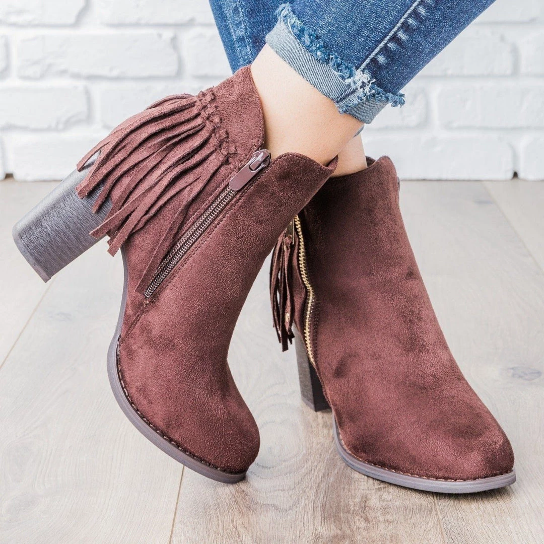 Via Pinky Fringe Chunky Heel Booties Newest Arrivals