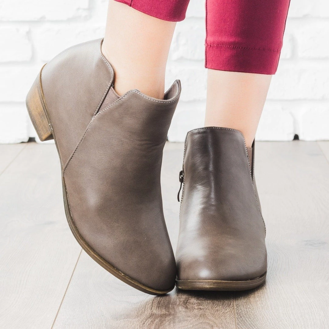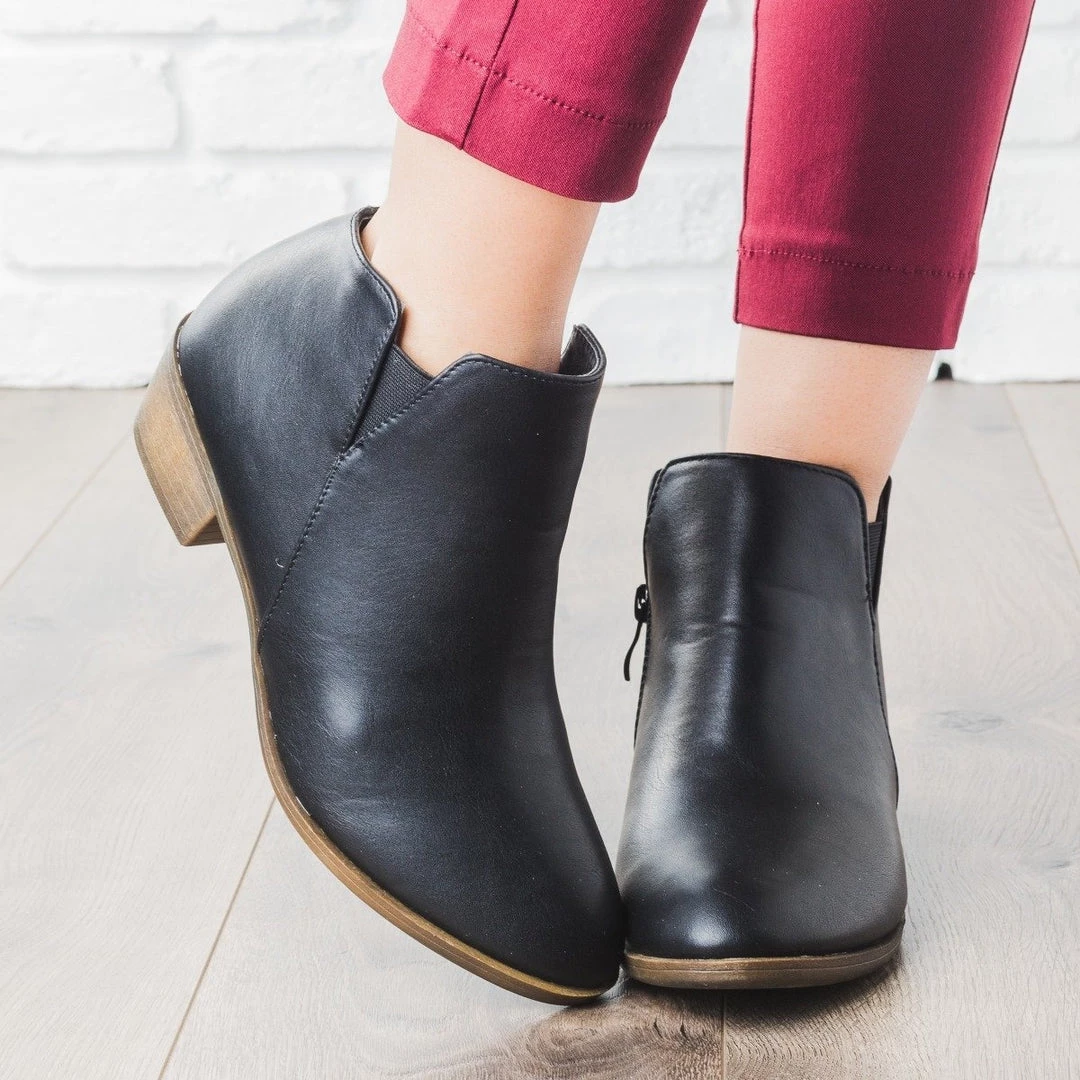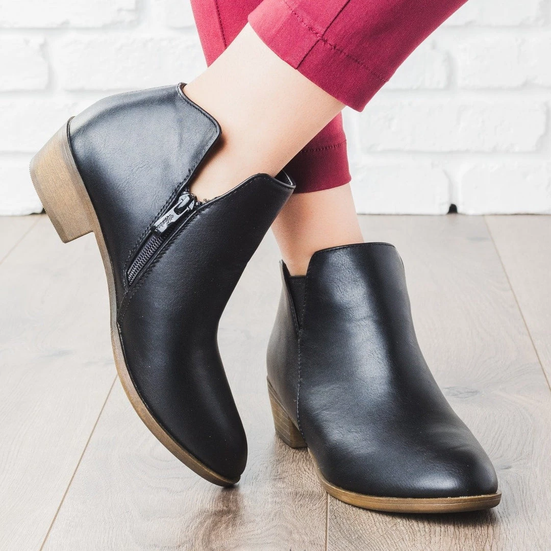 Ready for fall weather and fall style with these Weeboo Shoes Finely-17 ankle booties! They are crafted in faux leather and 1.5″ heel. Features cute ankle cut out and a zipper for convience. Made with all manmade/vegan materials and runs true to size.