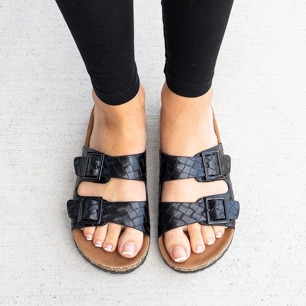 Get the perfect pair of slides to add some detail to all your casual outfits with our Weeboo Summer-2 slides! These fun slides are crafted form a faux-leather material and feature a classic birkenstock body with double straps and slip on design. They have a unique quilted design perfect for added dimension. Pair with mom jeans and a simple crop for an easy going outfit with a pop of color.Â