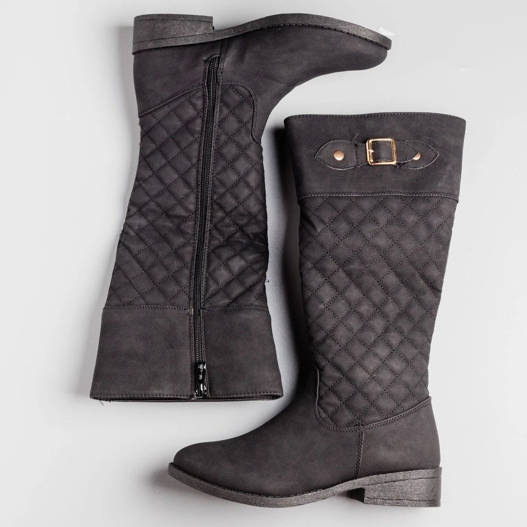 Weeboo Newest Arrivals Faux Nubuck Quilted Riding Boots