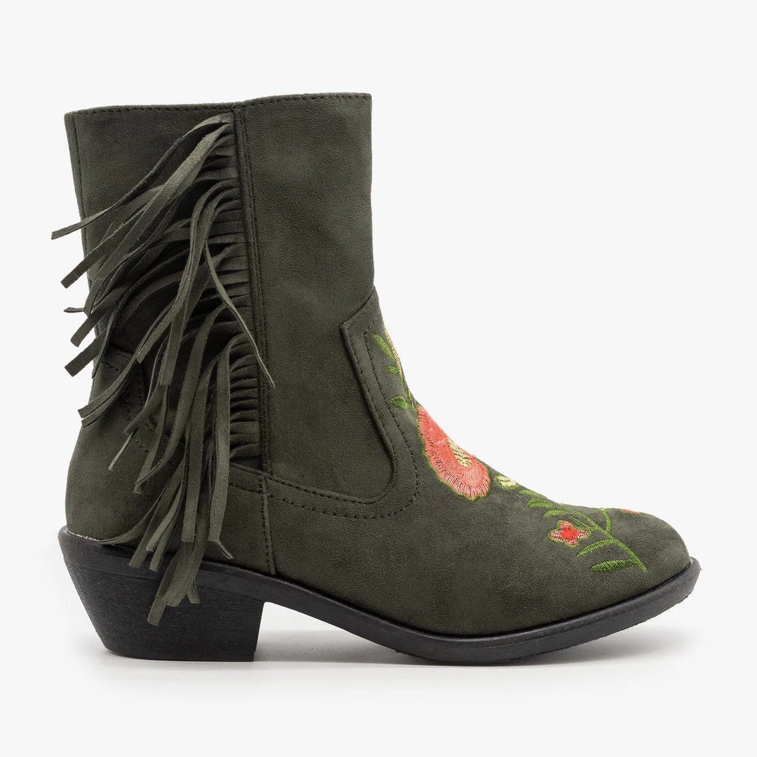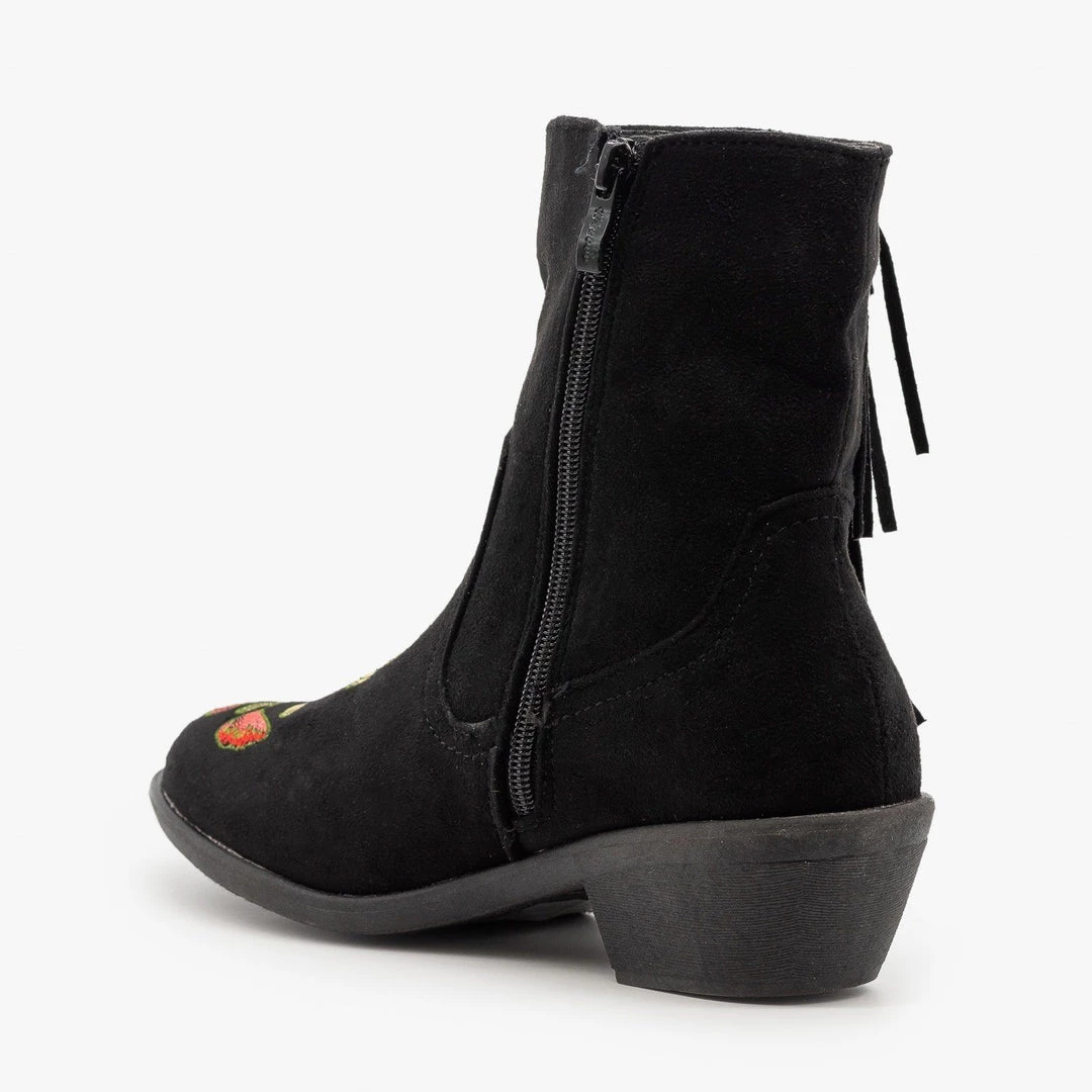 Weeboo Rose Embroidered Fringe Booties Newest Arrivals
