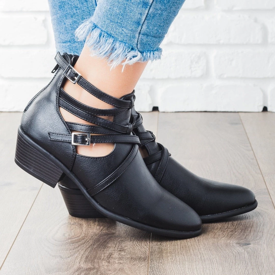 It’s all in the details with these lovely booties! The Wild Diva Shoes Manny-132 is made out of faux leather and features an almond-shaped toe, making this shoe comfortable and stylish. The chic body features side cut outs on either side of the ankle, and three intersections of criss crossing straps–two of which end in adorable adjustable buckles. These dainty little booties are finished off with a back zipper and a 1” stacked heel, just enough height to give you some peop in your step. These ankle booties are what dreams are made of! Wear them with some cuffed boyfriend jeans and a light, slouchy sweater and you’re good to go! Made with all manmade/vegan materials, and runs true to size.