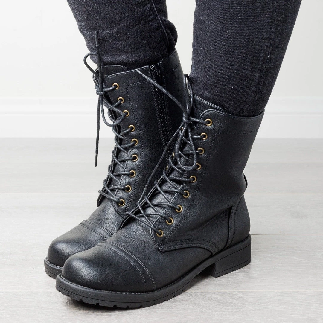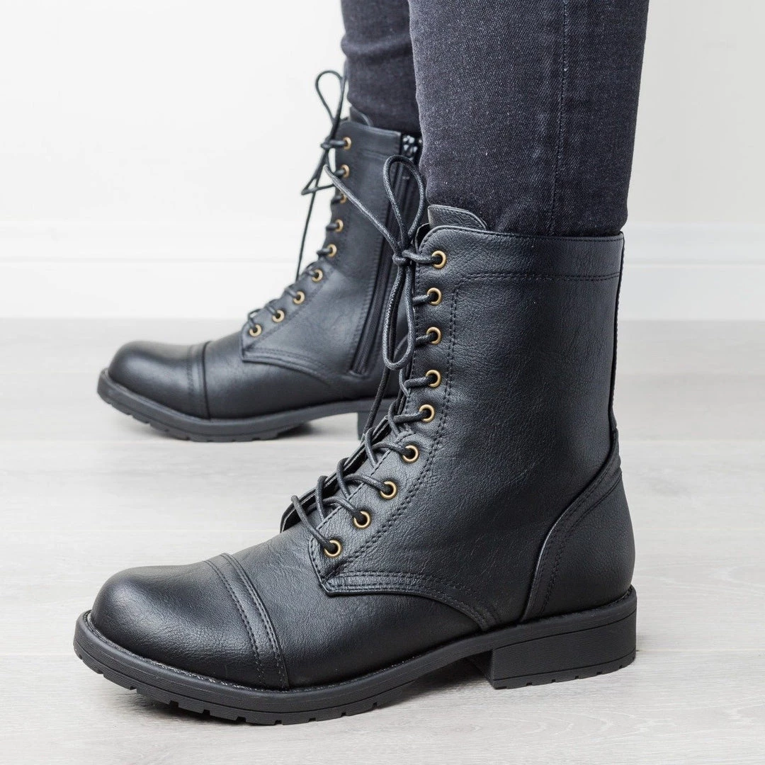Wild Diva Shoes Newest Arrivals Edgy Essential Combat Boots