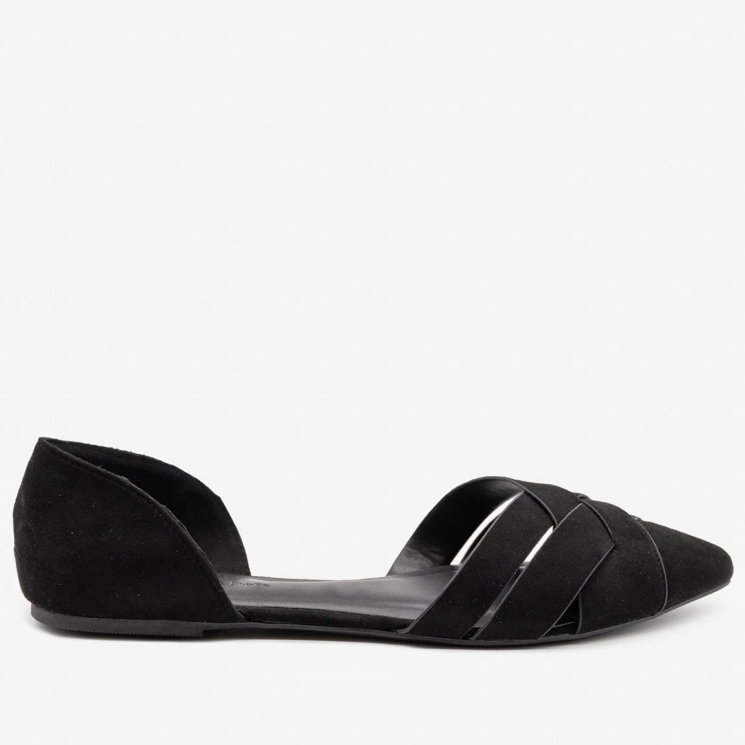 Stay right on point in these sassy yet chic Wild Diva Shoes Pippa-163 flats! Designed with faux suede, these cuties feature a flat heel, a lightly cushioned insole and a snappy pointed toe. The toe is closed and features a fishtail woven design for a chic touch of detail. In classic d’Orsay style, the sides of these flats are cut away, accentuating the shape of the foot. A back ankle support with a small inner elastic band helps keep your feet comfy. Pair these with flats with a pencil skirt and blouse for a simple business look! Made with all man-made/vegan materials and runs true to size.