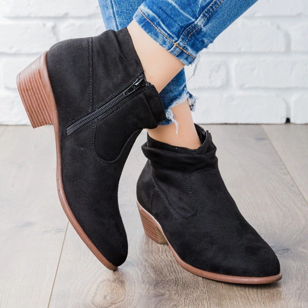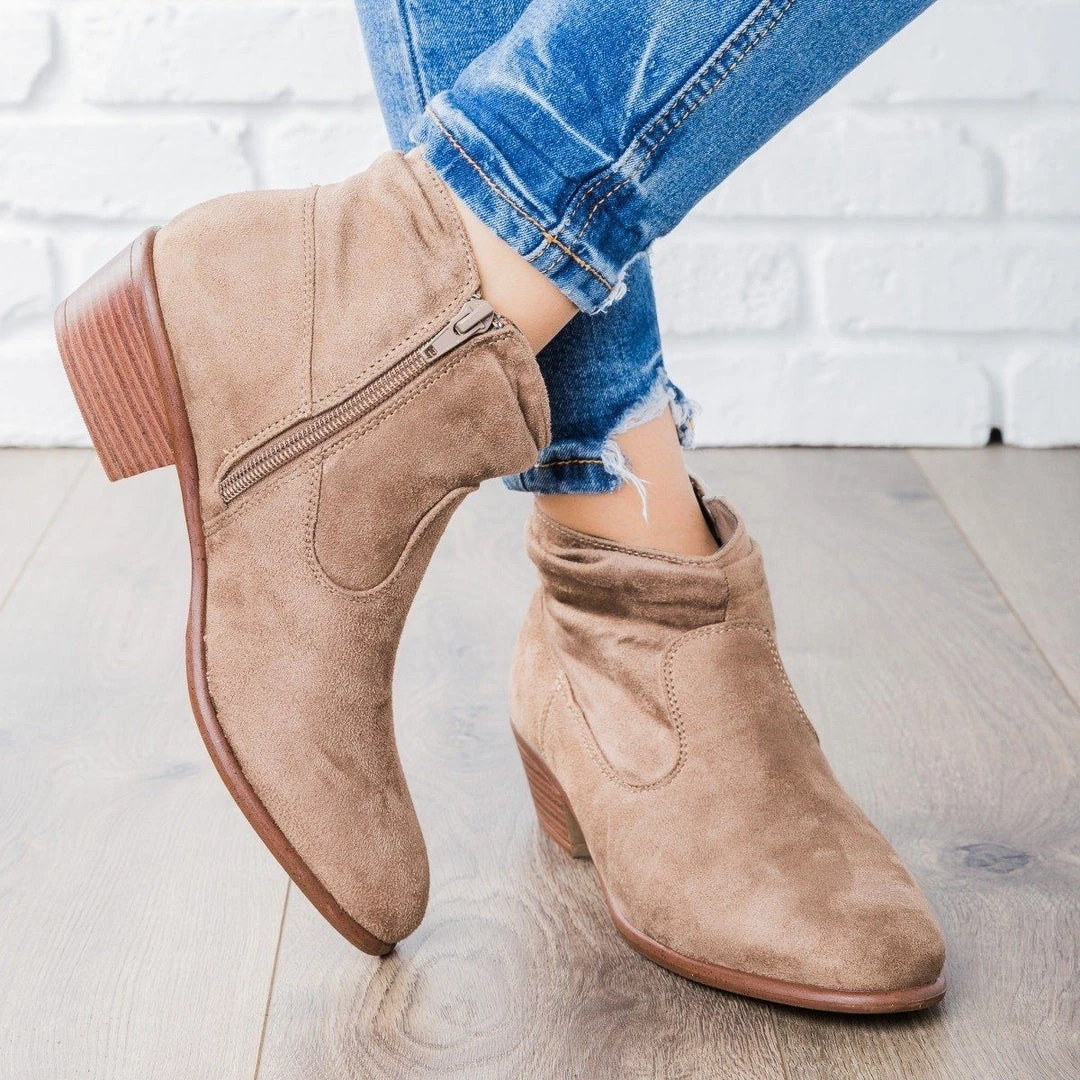 Wild Diva Shoes Manny-102 ankle booties have a relaxed fit and side zipper. They pair perfectly with skinny jeans or skirts. They are crafted in faux suede and have 2″ heel. Made with all man-made/vegan material and runs true to size.